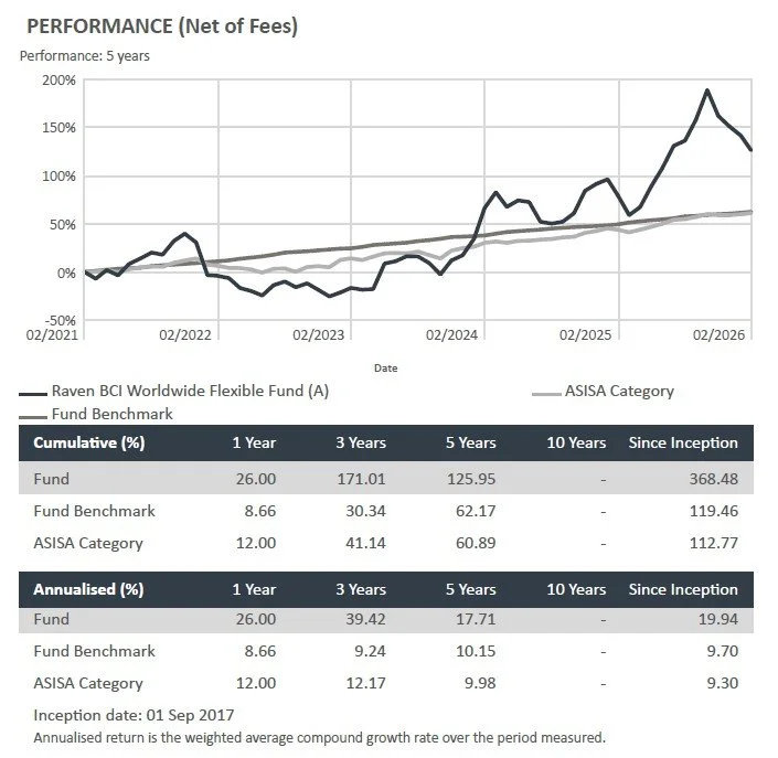 The Raven BCI Worldwide Flexible Fund invests in companies with strong growth potential — both now and into the future — aiming to deliver sustained positive share price momentum for investors.